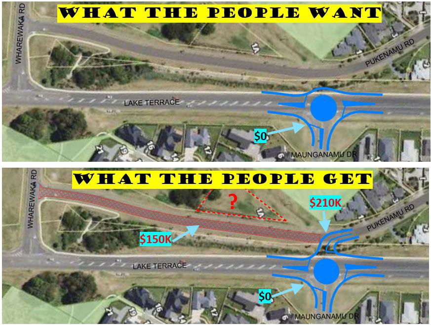 However in my mind at least, this whole exercise has been something of a red herring. Because the issue isn’t so much about public engagement – although that is still important – it is whether or not Council chooses to listen to what the public have to say and bend their will to it. I think there have been plenty of major decisions in the past where the public have been excluded (including the Taupo Town Transformation Project), but also where the public have been included but patently ignored. The Pukenamu Roundabout Project I hold up as a classic example of that, where the community engagement was actually very good and even perhaps a little over the top. But the almost universal request of Pukenamu Road residents to remain unconnected to the proposed new roundabout was rejected, seemingly on the very dubious basis that Council is not acting illegally. Why don’t we let the lawyers run Council and see how that ends up, eh? Anyway, there is still time to change our minds about that particular decision because it hasn’t been built yet.