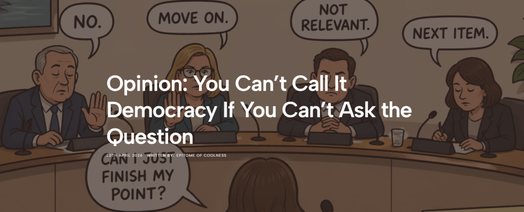 On that note I attempted to table a Notice of Motion for next weeks Council meeting which you can read HERE, but thus far have been thwarted by Chief Executive Julie Gardyne’s direct application of a technicality belying one of the very things I am wishing to highlight: