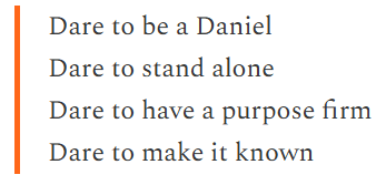 I had the Biblical character of Daniel pointed out to me twice this week as relevant to positions like mine in secular governance, and the analogy is apt. It is every bit akin to a den of lions, and it takes more than just willpower to overcome the gravity of this world which pulls so hard. Great men, and women, are required to pull this nation back to the greatness it once was and can still be. So stand firm wherever you are, and dare to stand alone. Because others will see and follow.