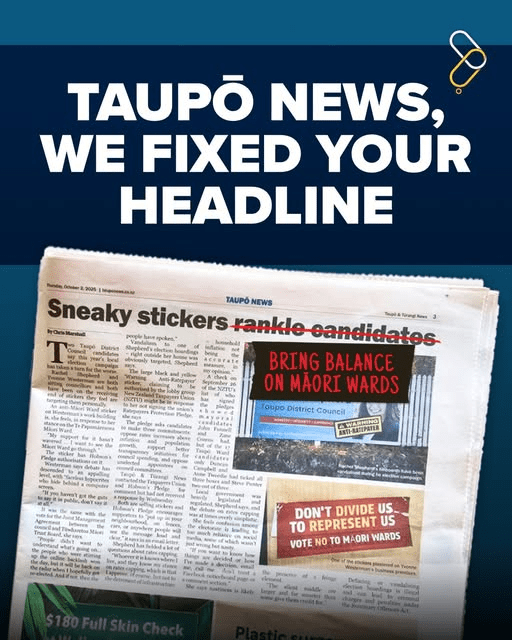 Complicit cop-out: Last week, Taupo District Council shared this informational video – apparently produced by Gisborne District Council – that describes Māori wards as “one way Te Tiriti o Waitangi can be honoured at a local level”. I raised concern to our Electoral Officer Warwick Lampp that this kind of language is bias by omission, because it subtly suggests that not supporting Māori wards would dis-honour the Treaty – which is an unproven and politicised claim. I say it is analgous to publicly messaging that violence can make you feel better, but leaving out the bits around consequences and non-violent alternatives. Council Chief Executive Julie Gardyne refused my request for the video to be removed from the Council website, because guess what – she is deferring to the Electoral Officers decision which is not to intervene! Local media reporting isn’t exactly providing very balanced coverage on this issue either, as this Taupo & Turangi News article last week about a one-sided panel discussion on this topic demonstrates. Not that I am biased or anything (?!), but I am speaking as an independent and not as a ratepayer funded supposedly neutral source of information.