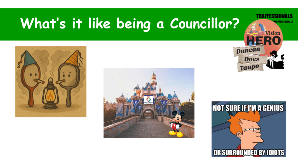 Before I do that though – what’s it like being a Councillor at Taupo District Council? I think pictures can speak a thousand words sometimes, and since I started penning my thoughts on Council over a year or so ago to social media, I would say these three cartoons well express some of my more notable lowlights. Not that I am trying to be discouraging, there were plenty of lighter moments than these, and I have absolutely no regrets because it has given me some interesting experiences I would otherwise not have had.